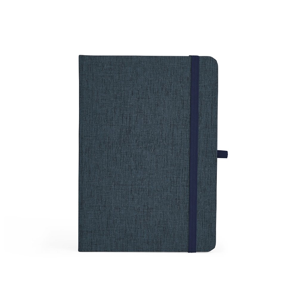 CADERNETA EM LINHO COM PORTA CANETA- AZUL