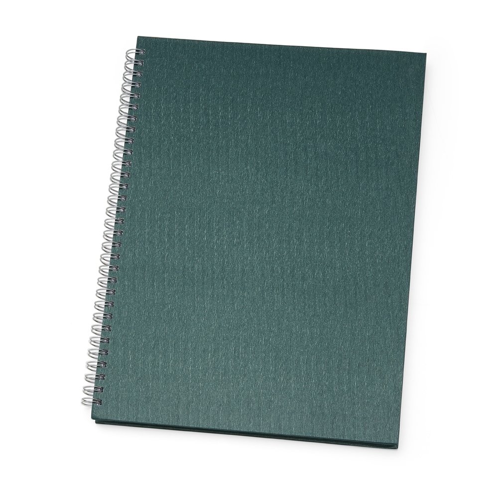 Caderno grande percalux com pintura metalizada e wire-o prata. Miolo permanente e folhas para preenchimento de dados pessoais, comerciais e contatos. OBS.: PEDIDOS APENAS MÚLTIPLOS DE 10 PEÇAS!