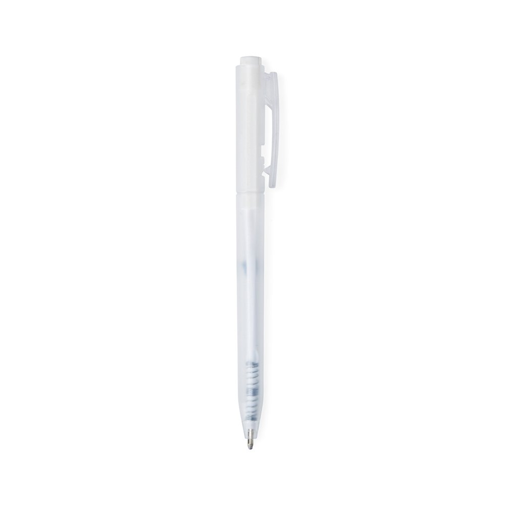 Caneta plástica translúcida com carga esferográfica azul 1mm e acionamento por clique. OBS.: PEDIDOS MÍNIMO DE 50 PEÇAS!
