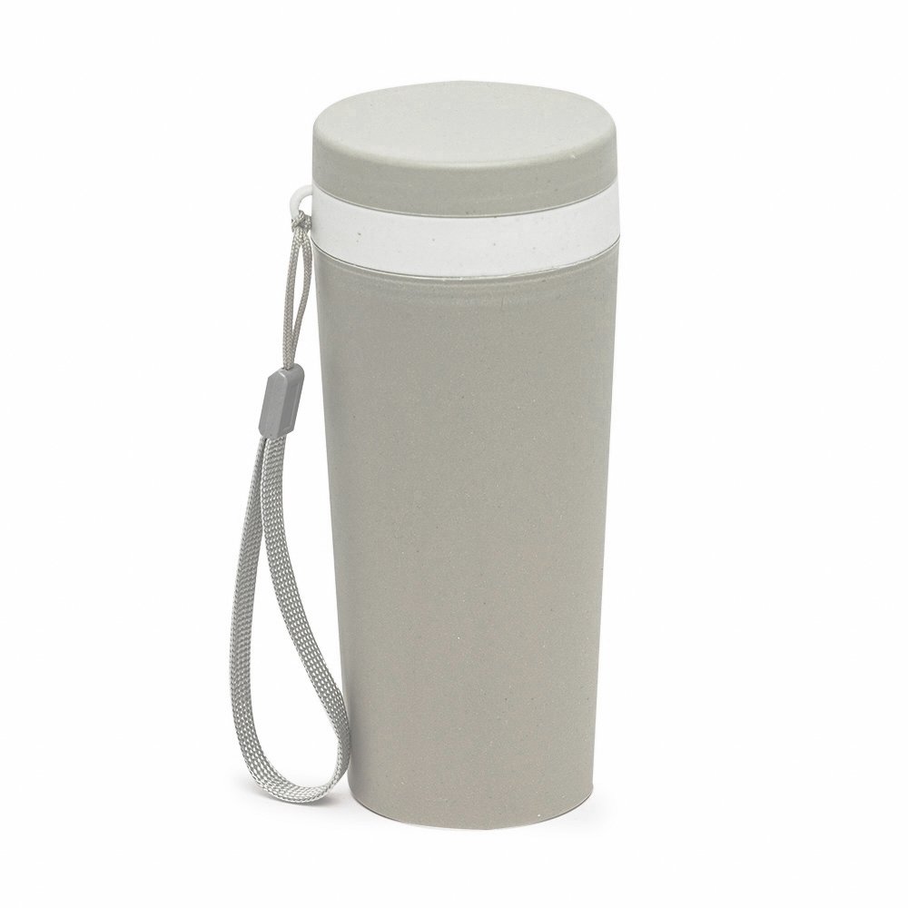 Copo isotérmico fibra de bambu 350ml com parede dupla e alça. Copo produzido em Polipropileno livre de BPA, possui uma tampa de vedação rosqueável e alça de nylon (removível) para transporte. Conserva a temperatura interna durante um período de 1 à 2 horas, mas não dispõe de isolamento térmico. O copo pode ser levado a lava-louças, geladeira e micro-ondas.