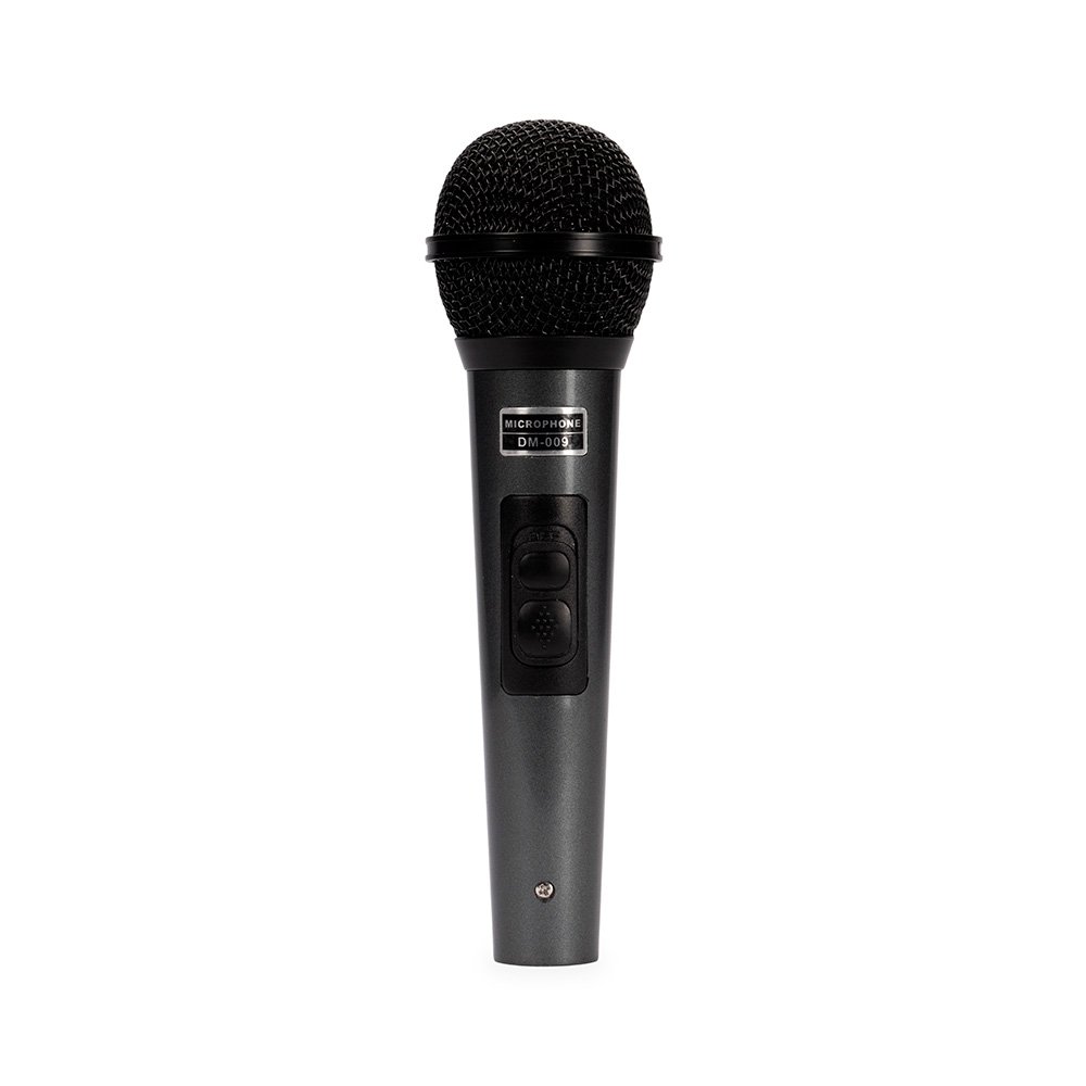 Microfone dinâmico unidirecional com estrutura leve em plástico, cabeça circular com malha de proteção metálica e chave liga/desliga. Acompanha cabo XLR-P10 com 4 metros de comprimento.