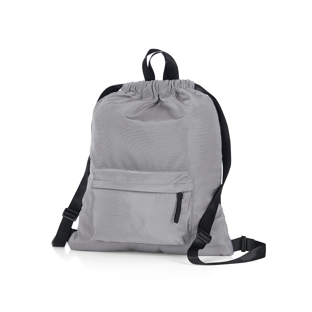 Mochila saco em poliéster impermeável com capacidade de até 14 litros. Possui um bolso frontal com fechamento em zíper, um par de alças de mão, além de alças ajustáveis para as costas e revestimento traseiro em espuma respirável.