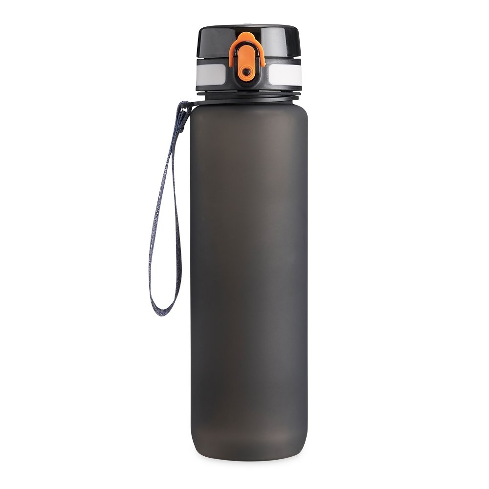 Um squeeze plástico versátil com a capacidade máxima de 1 litro. Possui tampa rosqueável com protetor para bocal de acionamento automático e trava de segurança. Além disso, apresenta alça de nylon para facilitar o transporte e um cesto infusor plástico.